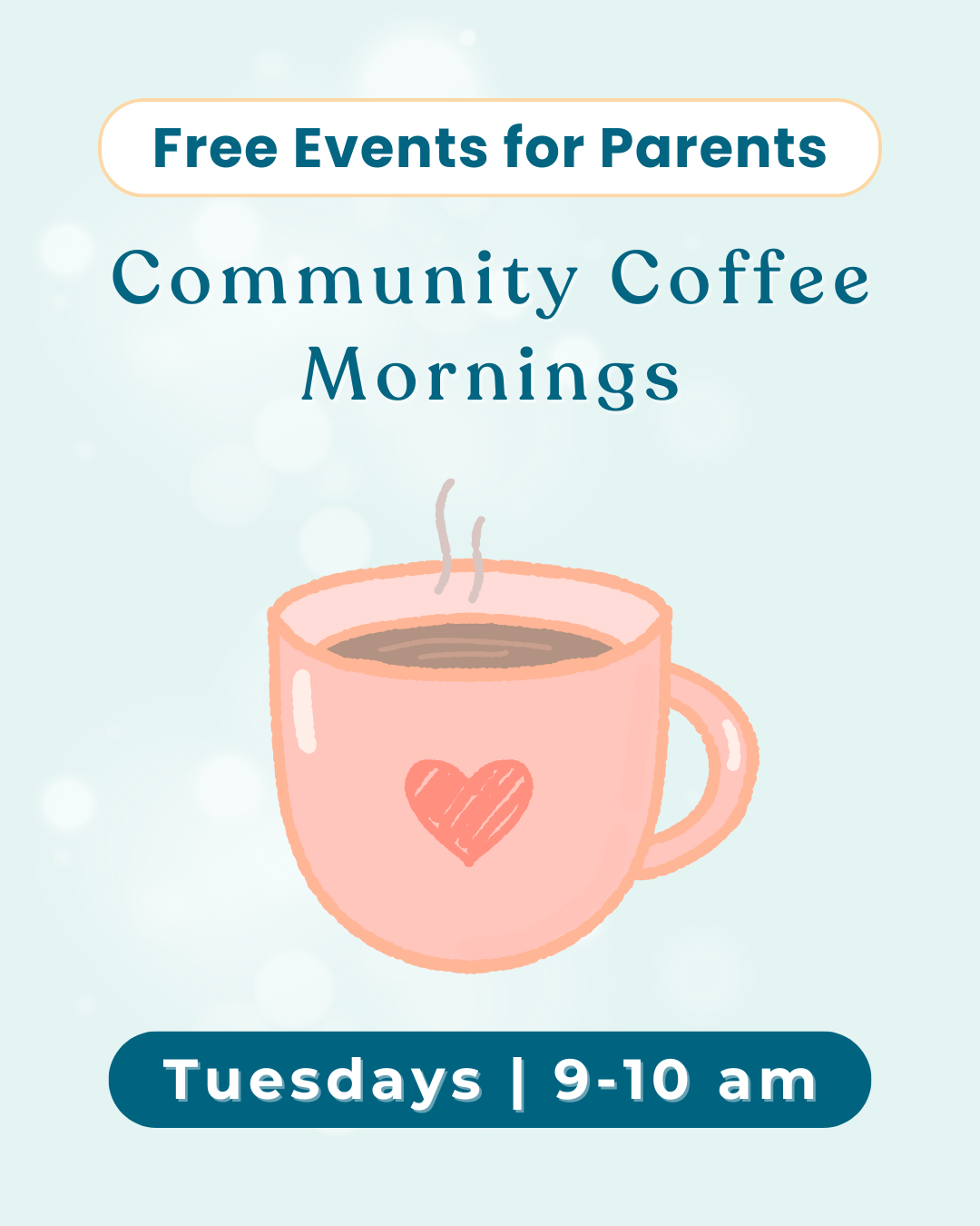 Every Tuesday from 9–10 am, we gather in an open, friendly space for parents and carers to pause, connect, and share the ups and downs of life with young children. It’s never about perfection here: you’ll find authentic conversations, genuine laughter, and acceptance (coffee stains and all).
